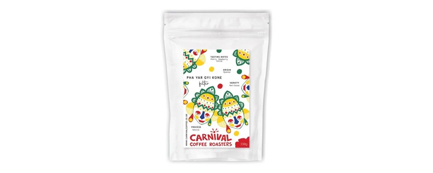 The Pha Yar Gyi Kone coffee from Carnival Coffee originates from Myanmar and is grown in the Ywangan district in the Southern Shan State of Myanmar. Pha Yar Gyi Kone is a village consisting of 200 households. A small team manages the production of coffee.