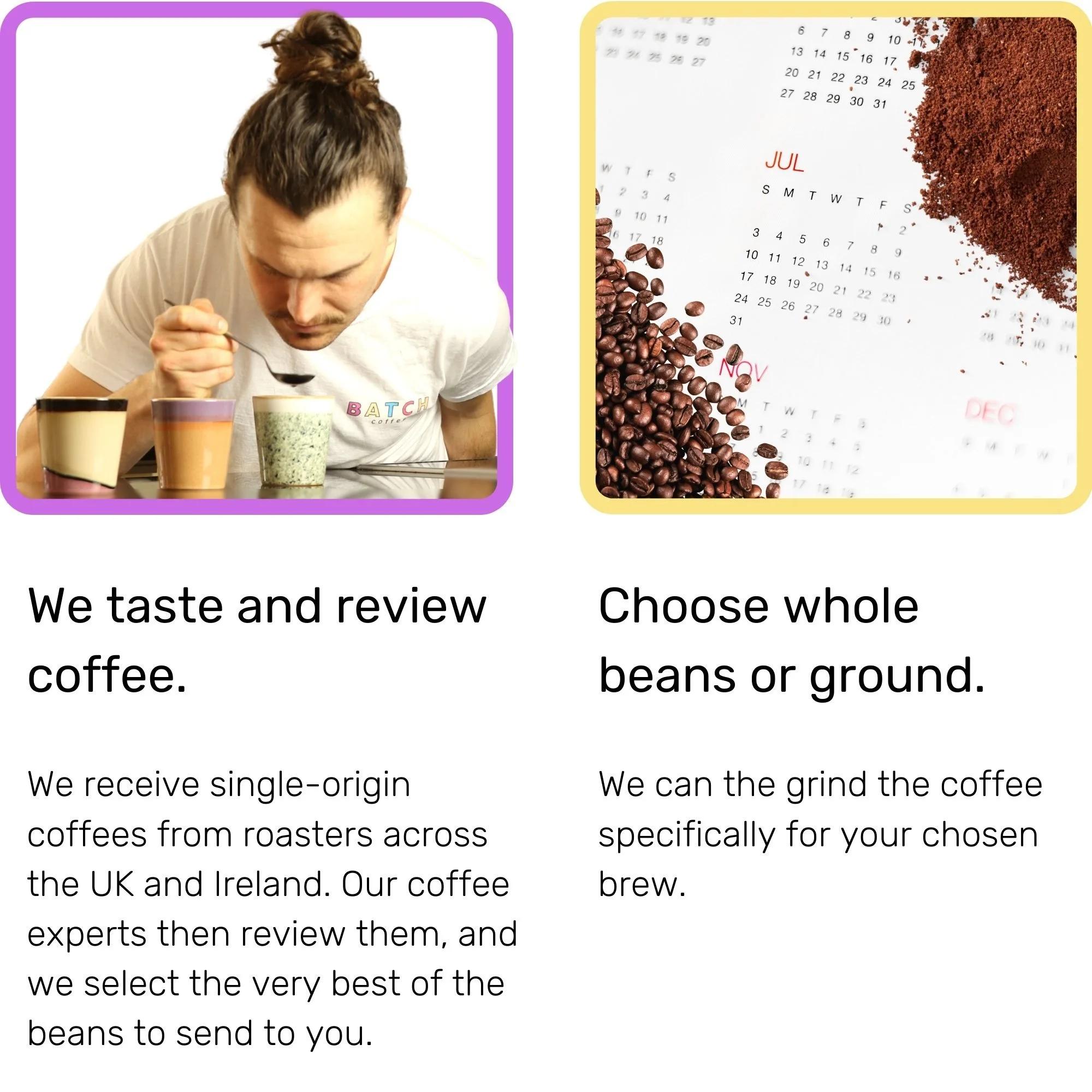 This is because we want you to try new, exciting coffees and compare them against each other, this is how professional coffee tasters do it and makes it much easier to put your finger on the way the coffee tastes.