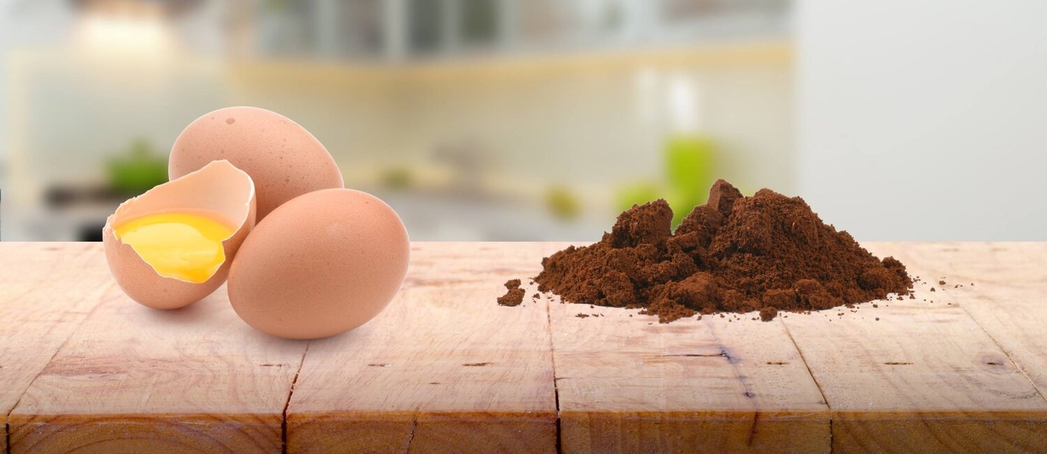 2. In a mug or bowl add together the coffee grounds and a cracked egg including the shell. Mix together so the egg is fully incorporated.