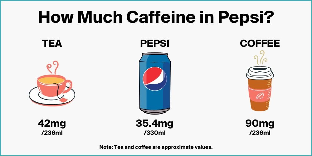 As discussed above there is around 35.34mg of caffeine in your 330ml can of Pepsi.