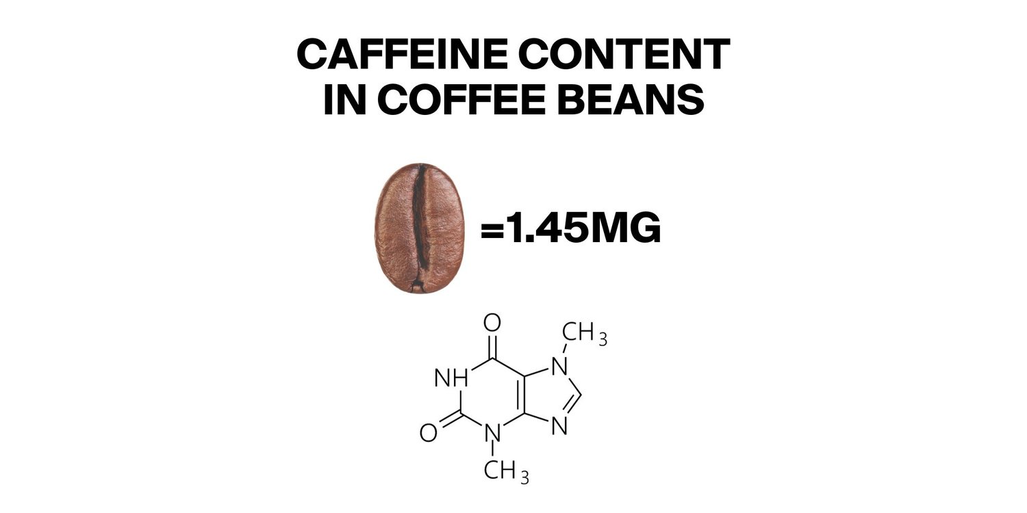 The caffeine content per coffee bean is roughly between 0.8%-1.4% which equates to an average of 1.45mg of caffeine per bean when you take the average weight of a coffee bean as 132.5mg.