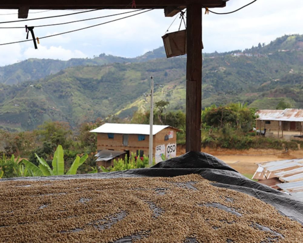 Smallholder farmers from the Chirinos and Huabal districts come together to deliver their coffee to a central dry mill.