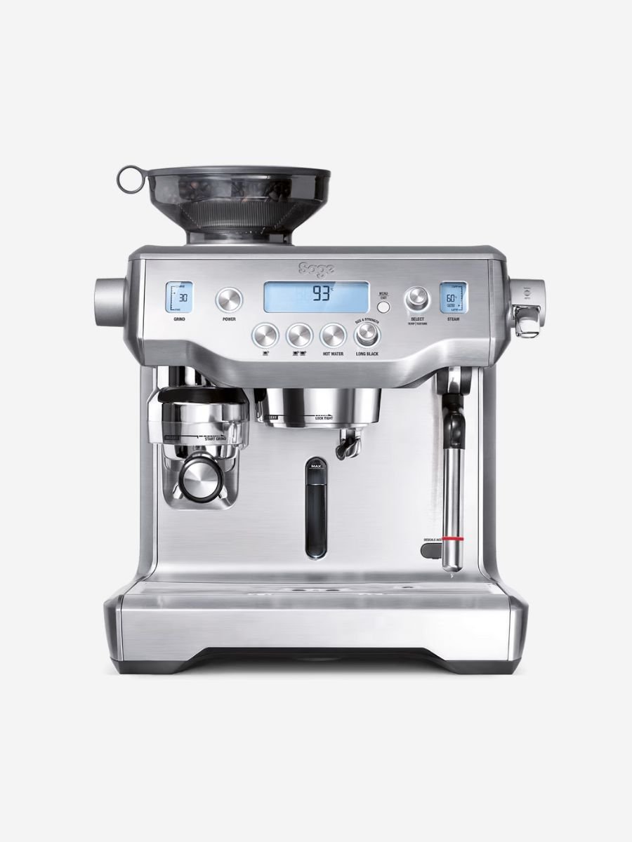 The Sage Oracle espresso machine is their top-of-the-range 'sports car' coffee machine. This machine has been expertly engineered to minimise the time it takes to craft your favourite coffee whilst delivering superb quality espresso. Set your grind and dose like other LCD screen Sage machines by adjusting the dials on the side and front respectively.