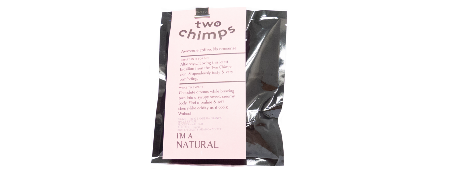 The Sitio Banderia Branca coffee from Two Chimps is a medium roasted Brazilian natural. The name is also the farm that the coffee was grown which is located in the Ilicnea region of the country. It is a yellow bourbon and grown and produced at 1800m.